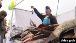 Сансызбай Камиев на ярмарке в Алма-Ате — не в первый раз. Он привозит в город продукцию рыбзавода из родного поселка Мынарал рядом с озером Балхаш. Благодаря низким ценам, возле его прилавка всегда стоит толпа покупателей.